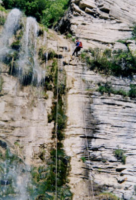 Topo: Navette: Retournez sur la route de la vésubie et allez jusqu'à St-Jean-la-rivière. dans le village tournez à gauche vers utelles et garez vous après le pont situé sur la Vésubie. Marche d'approche: Traversez le pont et montez dans le village (par les escaliers qui coupent la route). En haut du village suivez le chemin pavé, après une marche en forêt vous atteindrez une crête, après celle-ci quittez le chemin pour un autre de plus petite taille sur la droite. ce chemin vous mènera jusqu'au canyon. :) Le canyon: Le canyon attaque par une partie de marche, puis vous devrez enchaîner de grandes cascades ainsi que quelques petits sauts dans de belles vasques. (tout ceci au soleil svp!) :) Le retour: Une fois en bas de la dernière cascade, prenez le sentier sur la rive gauche, il vous mènera au pont au votre voiture vous attend (je l'éspère!). Astuces: 1. dans le deuxième rappel il y a un fractionnement à mi-cascade afin d'installer une deuxième corde pour diviser le rappel. |